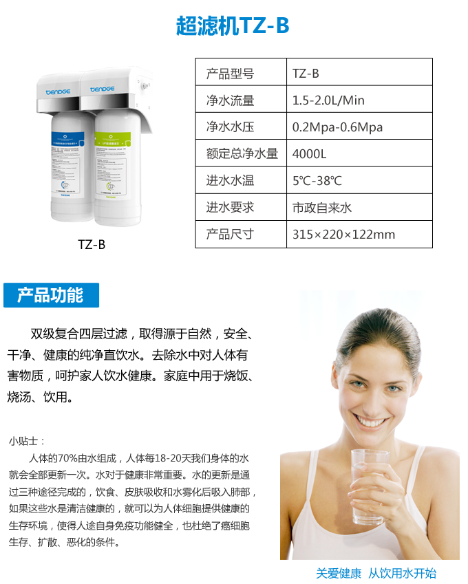 額定凈水量:4000L 進水要求:市政自來水